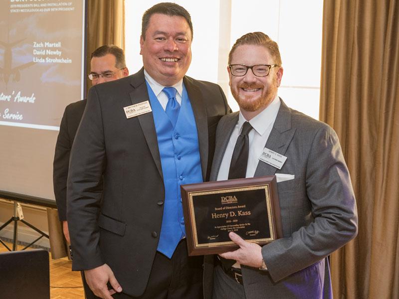 Attorney Stacey A. McCullough, of counsel, was sworn in by Judge Brian Jacobs as she was installed as the 98th President of the DuPage County Bar Association (DCBA) for 2019-2020; Henry D. Kass accepted the Board of Directors Award from outgoing President J. Matthew Pfeiffer; and Lynn M. Mirabella gave the invocation.