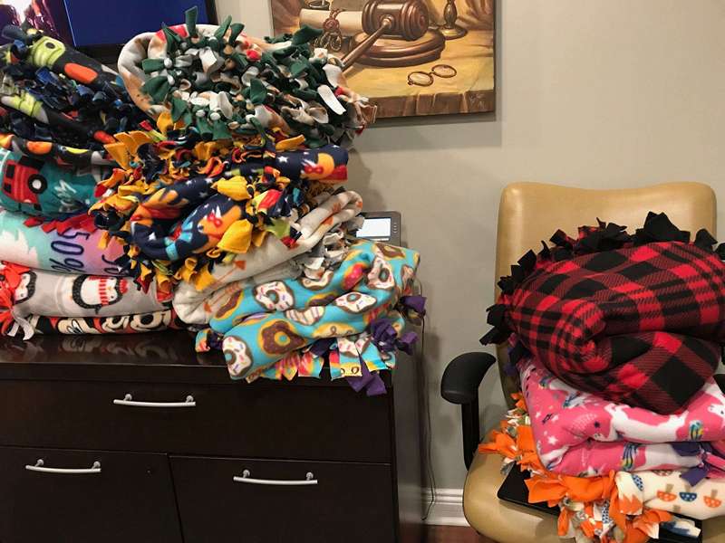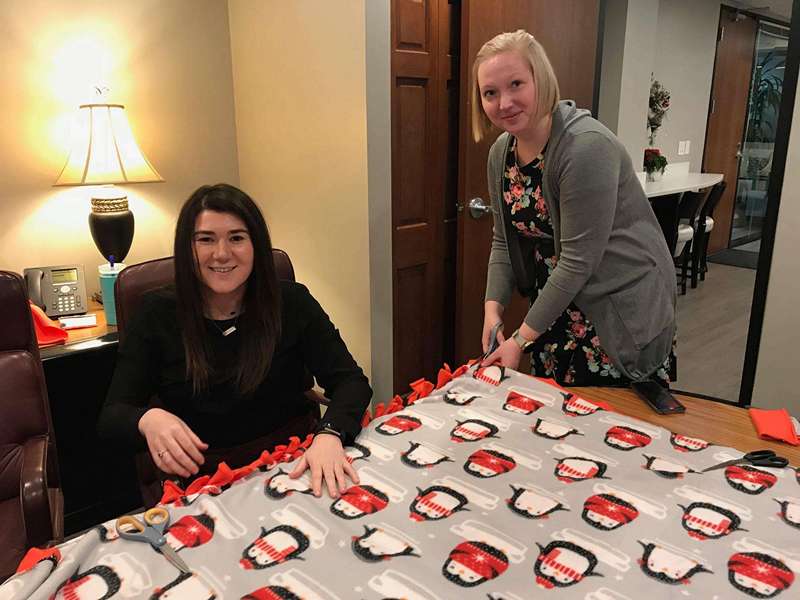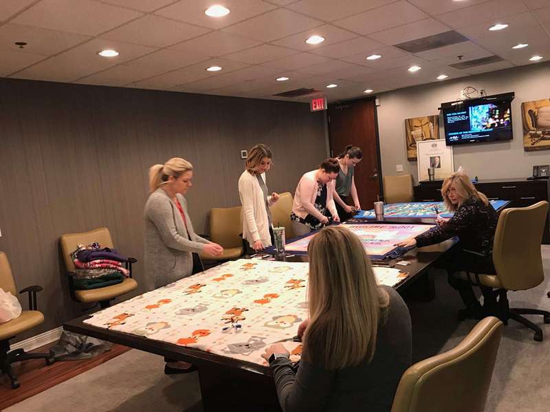 MKFM team members took some time out to make more than 15 blankets for the organization Happy Blankets. These fun, fuzzy blankets were donated to oncology patients at Delnor Hospital, Delnor Cancer Center, CDH, and the Living Well Center.