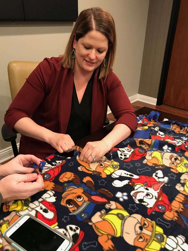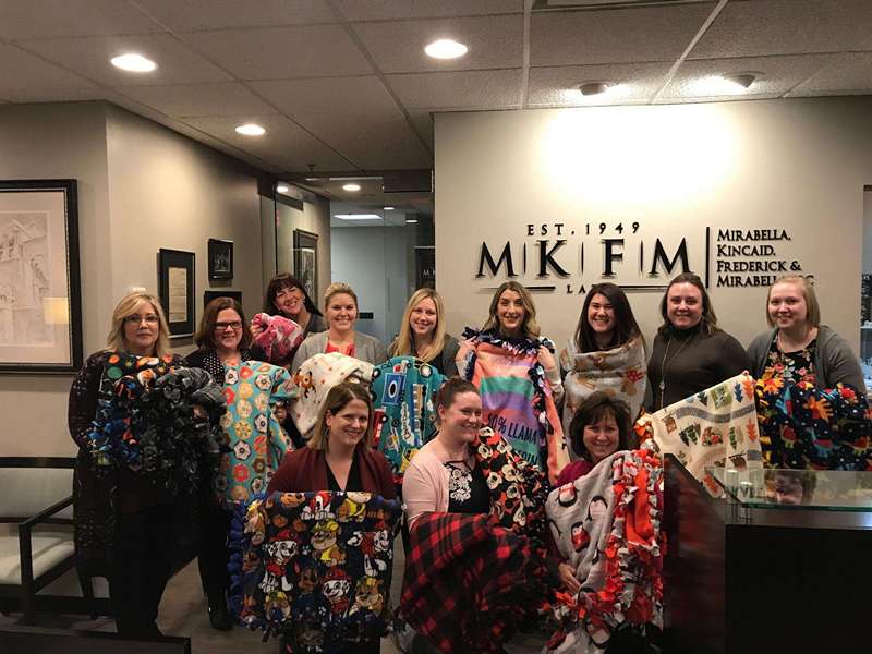 MKFM team members took some time out to make more than 15 blankets for the organization Happy Blankets. These fun, fuzzy blankets were donated to oncology patients at Delnor Hospital, Delnor Cancer Center, CDH, and the Living Well Center.
