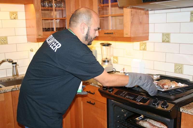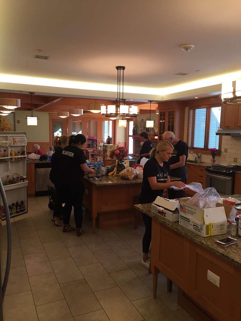 Team members plan, prepare and share a meal with the residents of the Ronald McDonald House near Central DuPage Hospital.